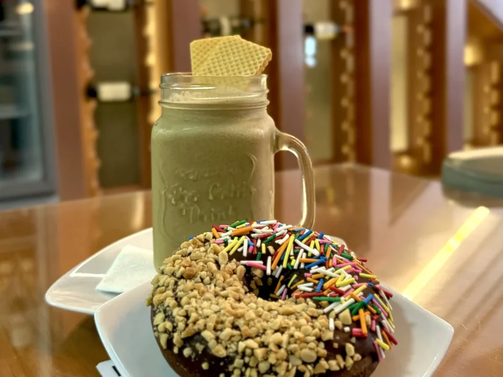 Refresca tu día con un granizado cremoso y endúlzalo con una dona grande cubierta de colores y crocante. Una combinación perfecta para disfrutar, compartir o simplemente consentirte.
